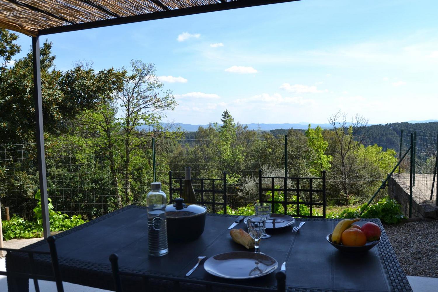 Au dessus du village de Ribes. À 15 minutes en voiture de toutes les commodités !